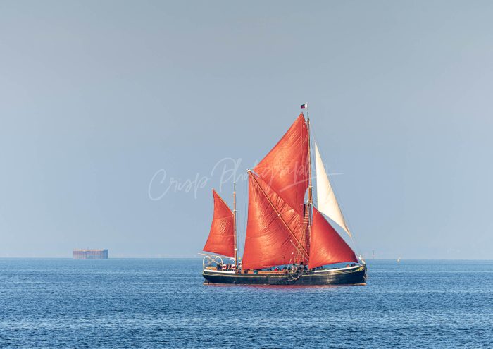 Hydrogen Sailing Barge in Maldon in full Sail on the River Blackwater. The rare view of the Hydrogen at high tide in full sail is available to order. High quality professional prints on 260gsm gloss photo paper.